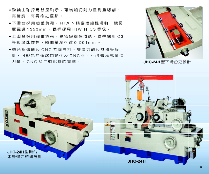 The grinding wheel spindle maintains a high hydrostatic pressure device, and the high pressure oil is used as a radial bearing to support the oil inlet with a pressure regulating valve, and the working pressure is set to 20 Kg/cm2.